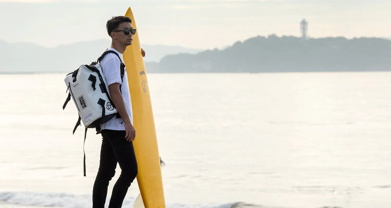 波に向かう高揚感も、サーフィンを終えたあとの心地よい疲れも、そのまま抱えて街へ戻る。濡れたものを気にせず仕舞える安心感と、自然に馴染むスタイルがあれば、海辺で過ごす一日がもっと自由になる。