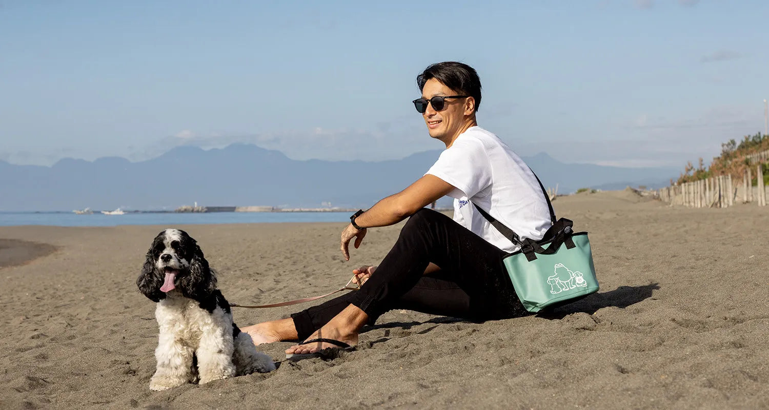 おやつや水、スマホまで整理できるポケットが充実し、急な雨や砂浜でも安心です。肩掛けや手持ちに対応するストラップ付きで、動きやすさも抜群。大切なパートナーとの時間を支える、軽やかで頼れるバッグです。