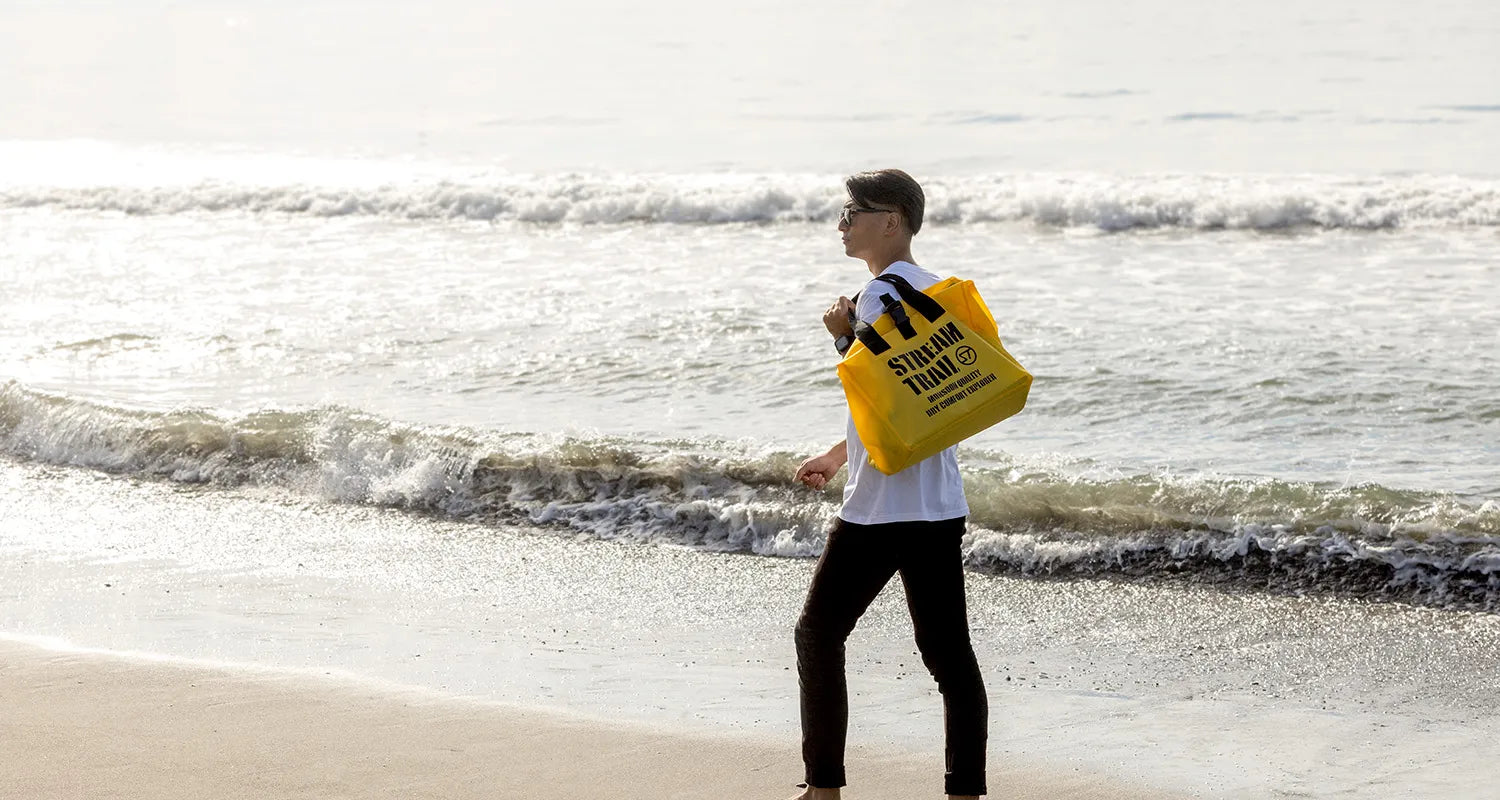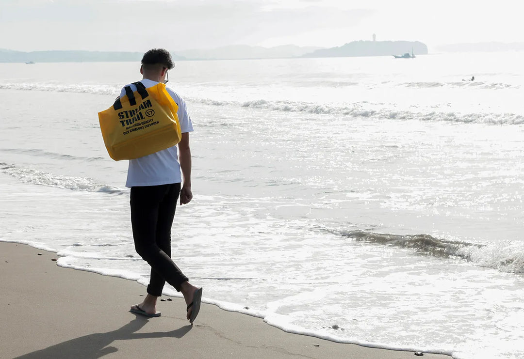 海と街を行き来するアクティブな一日に、軽さと大容量を両立したこのバッグは欠かせない相棒になる。