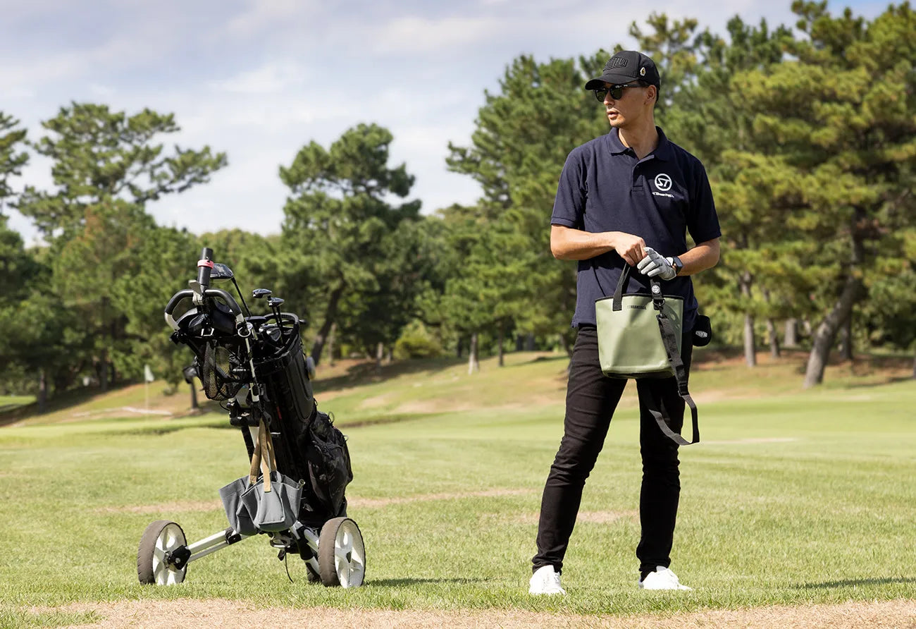 ティーやボールを取り出す所作が整うと、プレー全体に余裕が生まれる。軽快に持ち運べるサイズ感は、ラウンド中だけでなく普段の外出やちょっとした用事にも自然に馴染む。頼れる存在でありながら、控えめで上品。その使い心地は、気づけばいつも手にしていたくなるほど。