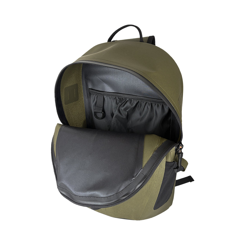 100%防水ファスナーを使用した完全防水モデル。 メインコンパートメント、サブコンパートメント共に完全防水仕様。 アクティビティーでの不意の水没・激しい雨や海水被りなどにも対応。左右に付けかえ可能なワンショルダー仕様で動きやすく突然の雨や水辺でも荷物をしっかり守ります。 両サイドポケットにはペットボトルや折り畳み傘を収納可能。